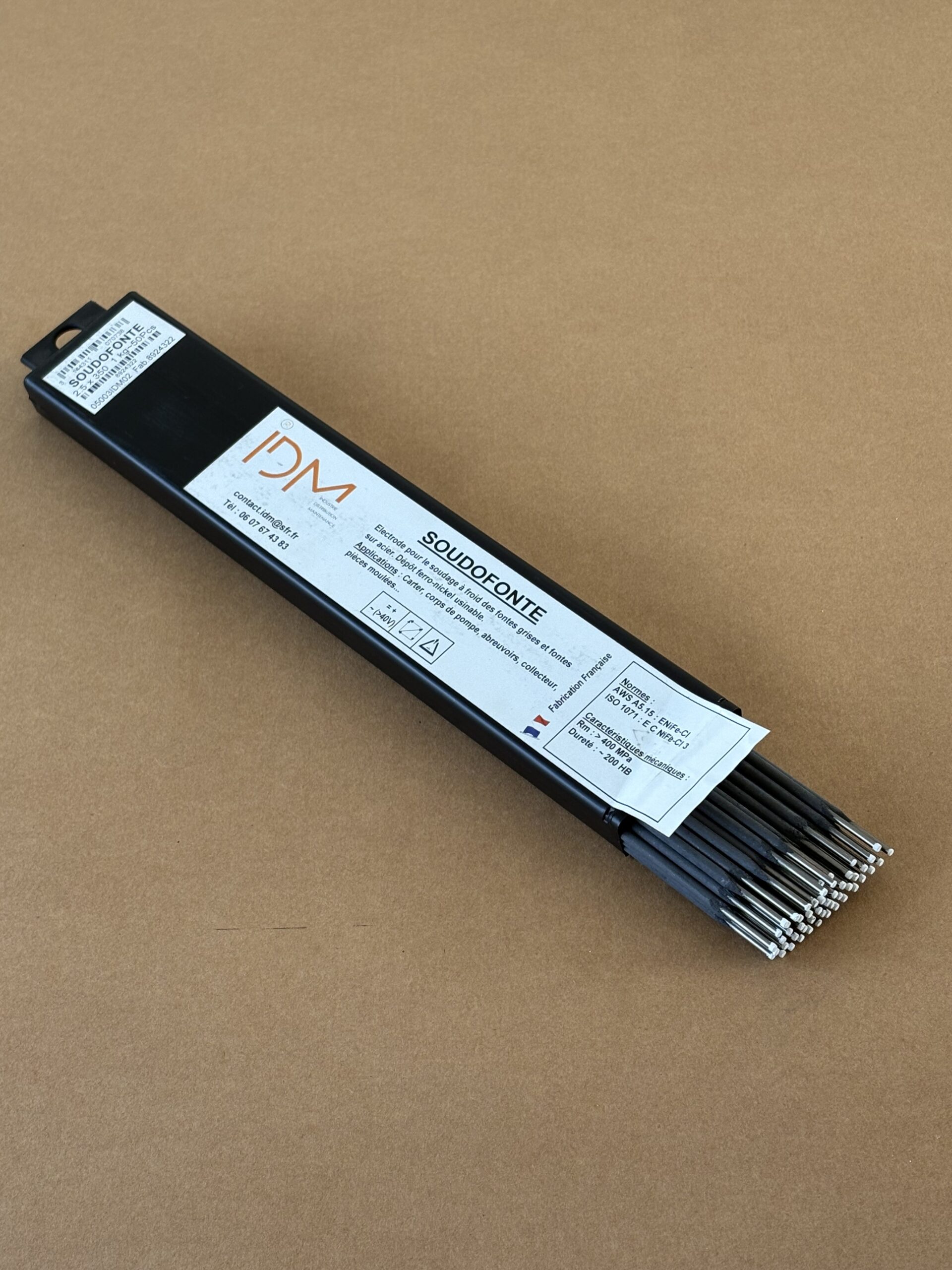 Électrode à enrobage graphito-basique et âme en acier de type bimétal à haute conductibilité thermique. Très bonnes caractéristiques mécaniques. Convient pour l'assemblage et la réparation de tous types de fontes hautement sollicitées.